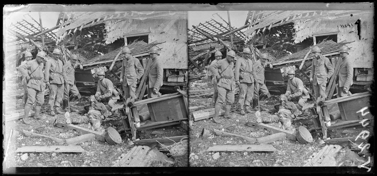 - Aubvilliers (Somme, 28/07/1918, V 2935 à V 2955) le village est détruit. Des soldats français ont découvert les corps de soldats allemands tués dans un abri. Ces derniers portent leur masque à gaz. (V 2960 à V 2961) de l'armement allemand récupéré sur le champ de bataille est regroupé (sMG/08 et Mauser Gewehr 98).