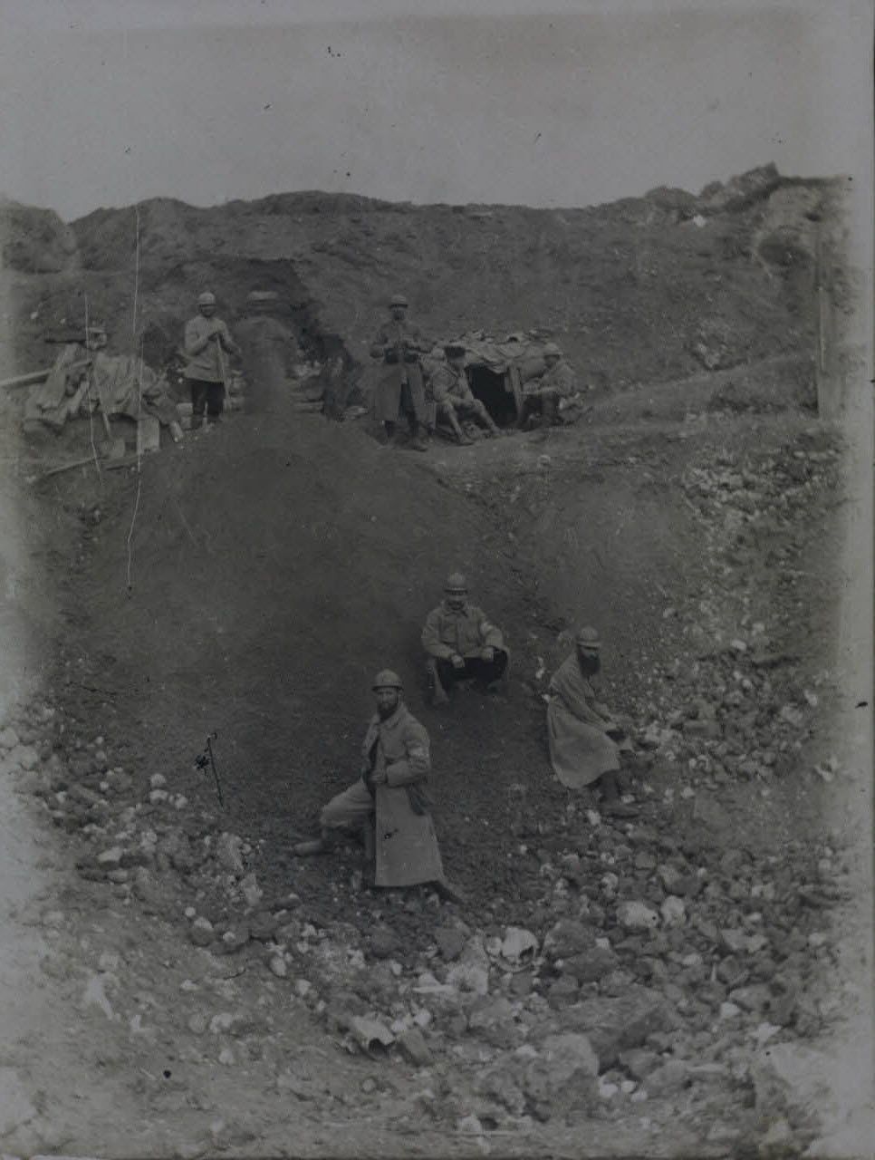 100. Entonnoir français résultant de l'explosion d'une de nos mines dans l'ancienne 1re ligne allemande. [légende d'origine]