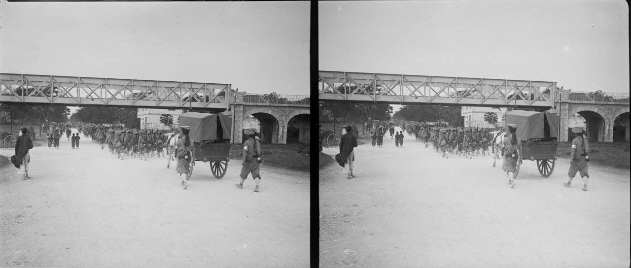 1310. Le 1er T[irailleurs] T[onkinois] revenant de marche (Avenue Bichot). [légende d'origine]