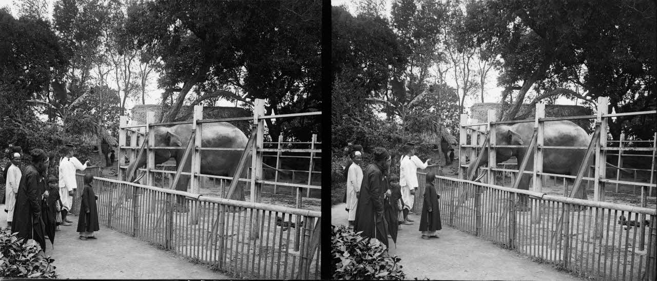 1335. Promenade au jardin botanique d’Hanoï. L’éléphant "Tobi". [légende d'origine]