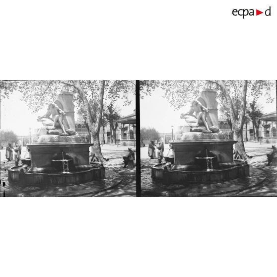 Buste du duc d'Orléans entouré de ruines romaines dans le jardin d'Orléans à Sétif.