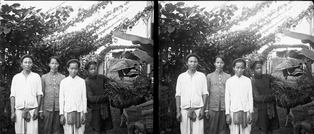 Portrait de domestiques annamites et de madame Imbert avec son fils, René, âgé de deux mois et demi.