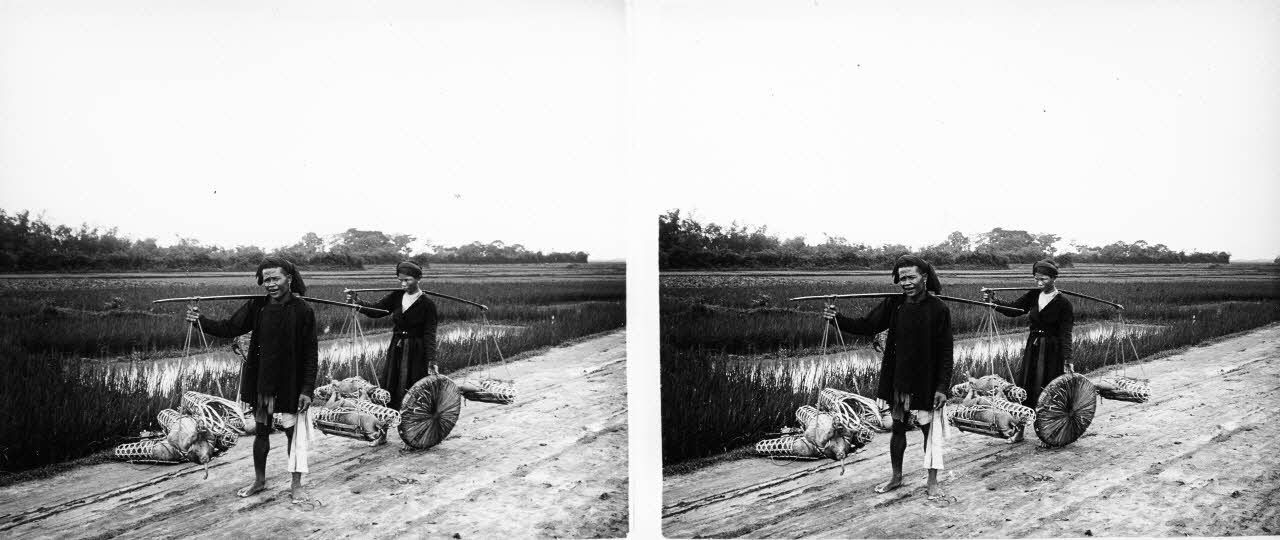 1375. Nha-Qués portant des cochons au marché.