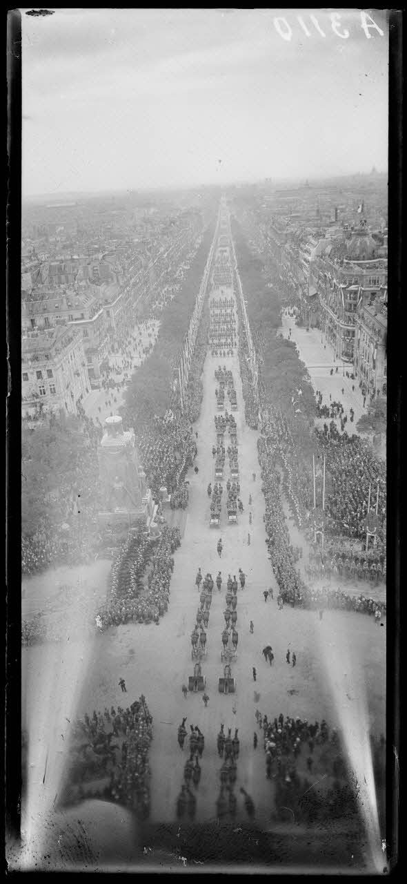 14 juillet Paris 1919. Vue du défilé prise de l'Arc de Triomphe. [légende d'origine]