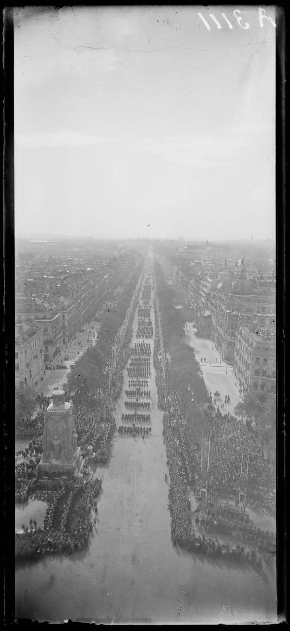 14 juillet Paris 1919. Vue du défilé prise de l'Arc de Triomphe. [légende d'origine]