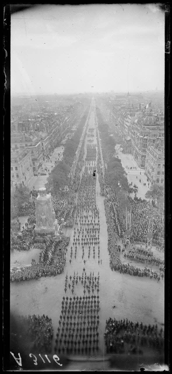 14 juillet Paris 1919. Vue du défilé prise de l'Arc de Triomphe.