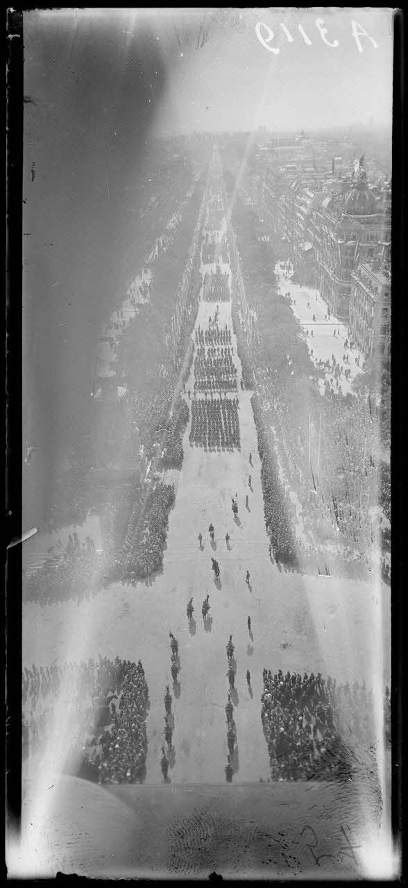 14 juillet Paris 1919. Vue du défilé prise de l'Arc de Triomphe. [légende d'origine]