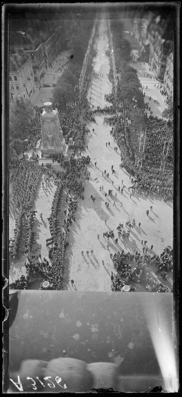 Vues du défilé prises de l'Arc de Triomphe (A3108 à A3126). La foule sur les Boulevards (A3127 à A3130, A3144 à A3146, A3168 à A3172). La foule place de l'Opéra (A3131 à A3135). La foule place de la Concorde (A3136, A3147-3148). La foule sur les Champs-Elysées (A3137 à A3143).et la place de l'Hôtel de Ville (A 3160-3161).
