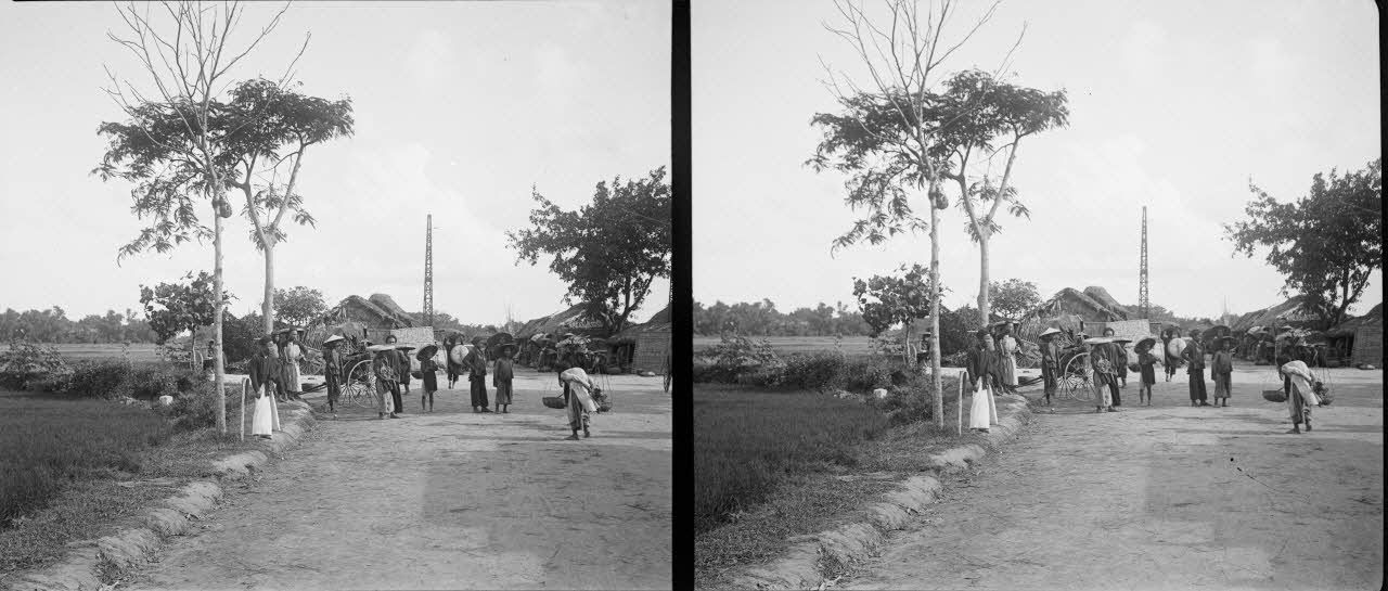 Mention manuscrite dans l'album dans lequel la photographie est reproduite : "En juillet 1908, deux cents hommes du 9e colonial furent emprisonnés par des tirailleurs et artilleurs annamites. Trois d'entre ceux-ci furent décapités à Hanoï et leurs têtes exposées, pendant trois jours, sur les routes que devaient emprunter les pirates".