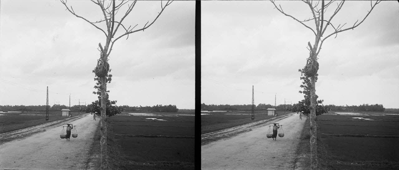 Mention manuscrite dans l'album dans lequel la photographie est reproduite : "En juillet 1908, deux cents hommes du 9e colonial furent emprisonnés par des tirailleurs et artilleurs annamites. Trois d'entre ceux-ci furent décapités à Hanoï et leurs têtes exposées, pendant trois jours, sur les routes que devaient emprunter les pirates".