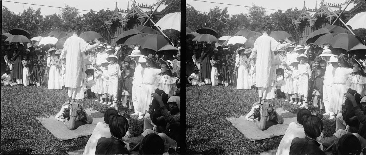 Acrobates annamites lors des célébrations du 14 juillet 1908 à Hanoï.