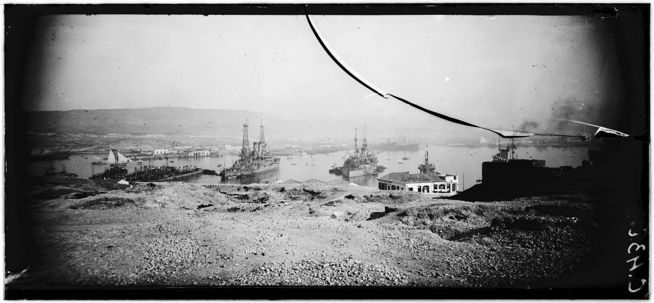 Réoccupé par la marine grecque, le port du Pirée voit à nouveau arriver les navires marchands après le blocus établi par les Alliés lors de l'incident diplomatique de décembre 1916, qui a abouti à l'abdication du Roi Constantin 1er. Chargés de charbon, des navires déchargent leurs cargaisons sur les quais du port.