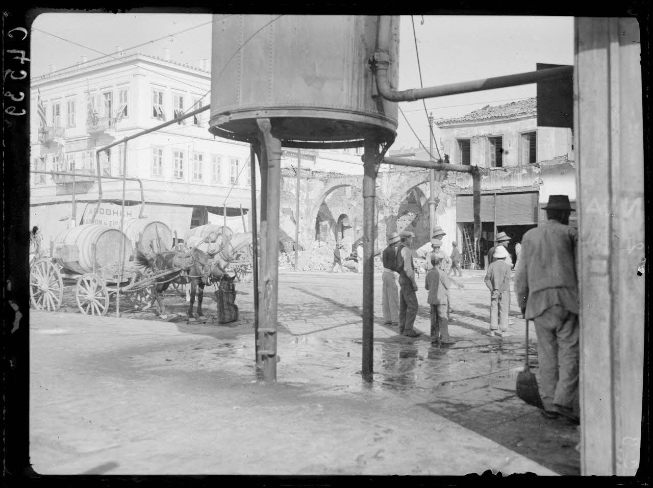 Le Pirée. Le poste d'eau principale de la ville détruit par un récent incendie. [légende d'origine]