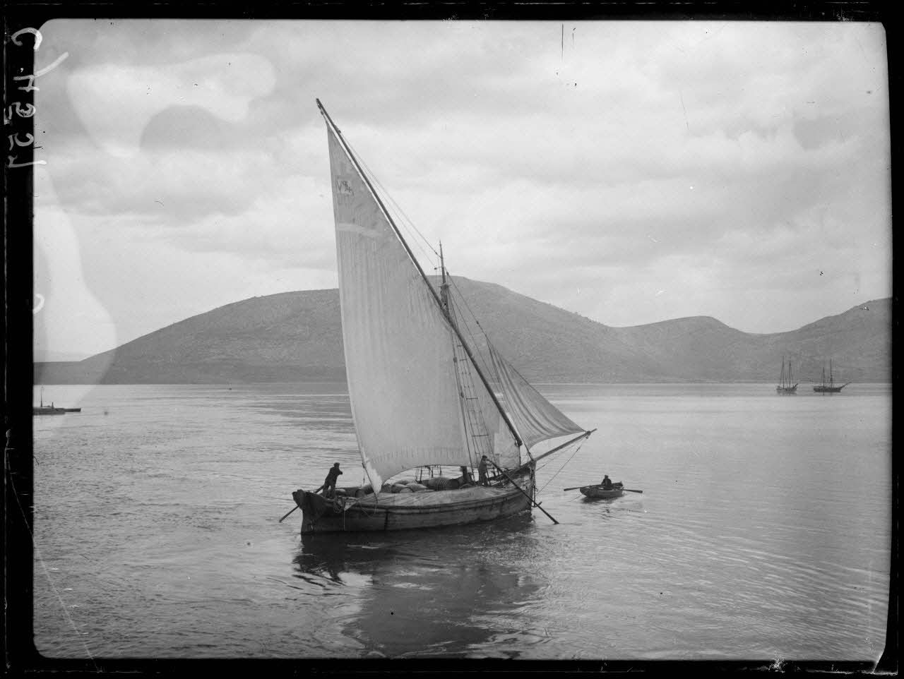 Grèce. Voilier grec dans la baie de Calchis. [légende d'origine]