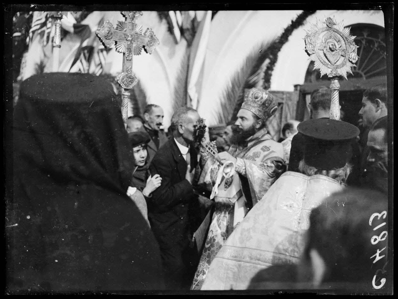 Athènes. Cérémonie de la bénédiction des eaux. Un grec embrasse la croix. [légende d'origine]