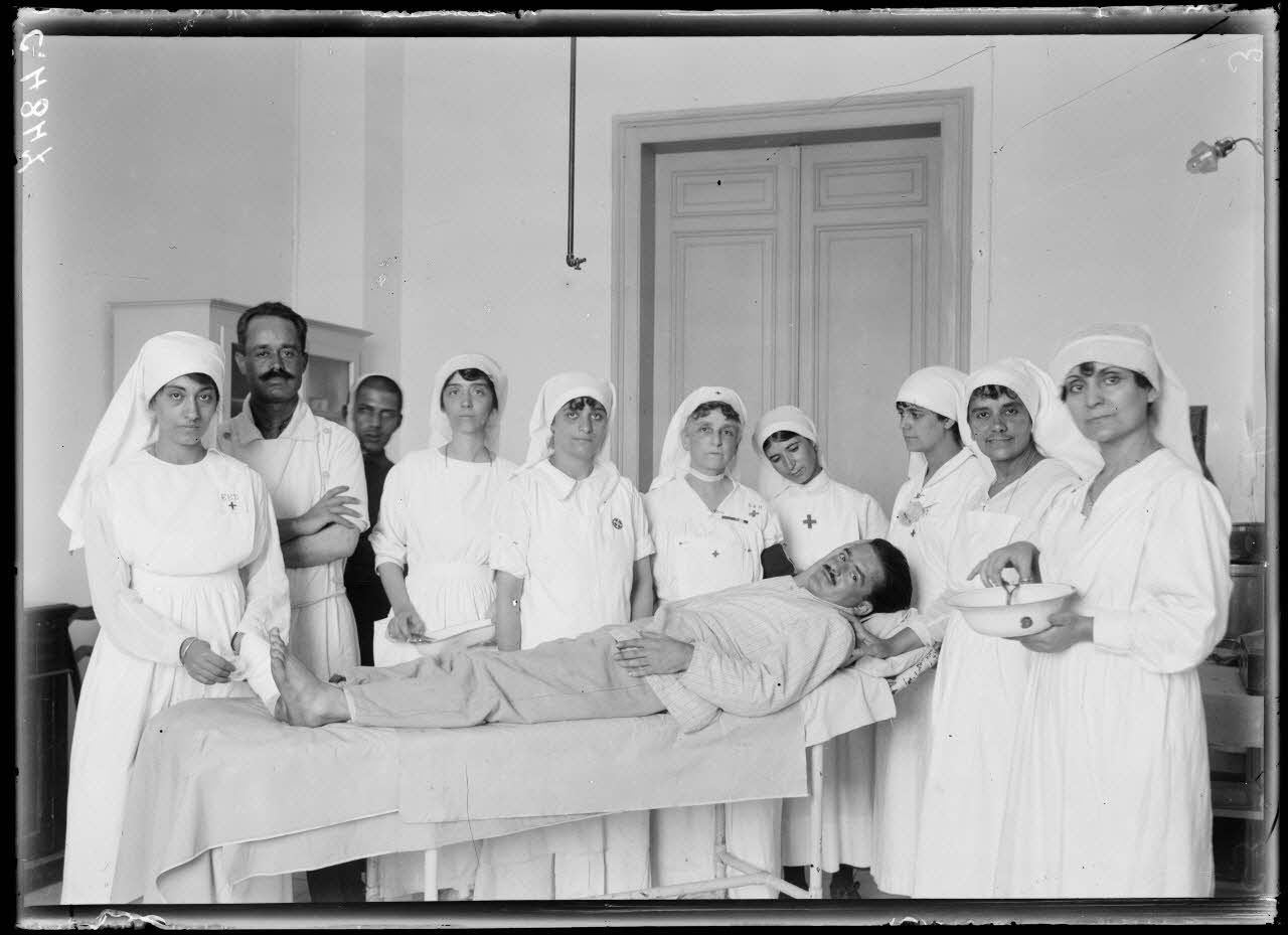 Athènes. L'hôpital grec "L'Arsakeion" avant le pansement. [légende d'origine]
