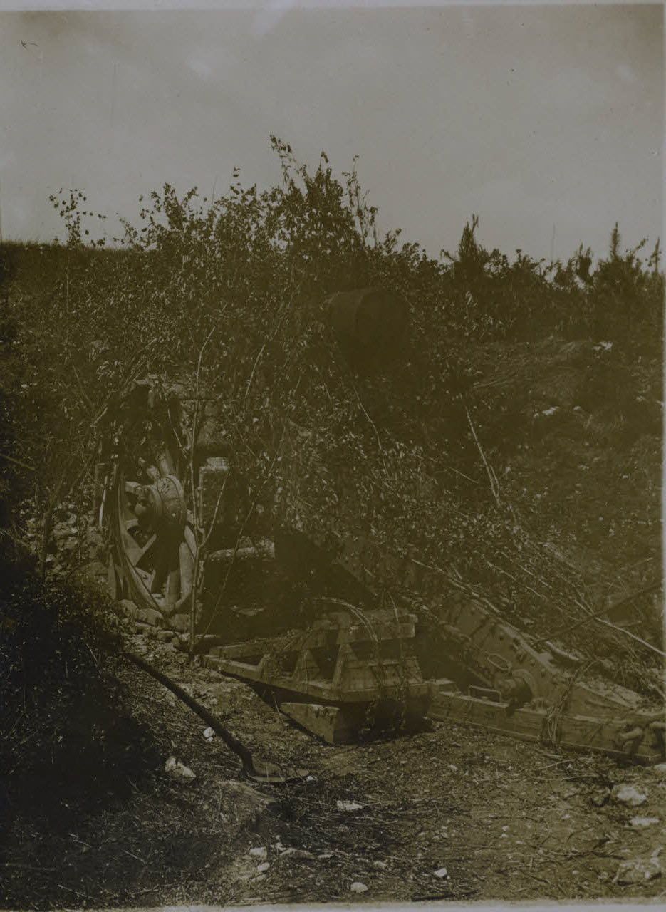 Les archives photographiques du médecin major Augarde (1869-1943), affecté au 138e régiment d''infanterie, sont caractéristiques de la production d''images fixes militaires pendant la Grande Guerre : portraits de militaires, pièces d''artillerie et mitrailleuses avec leurs servants, villages en ruine suite aux bombardements ennemis, abris de fortune aménagés dans des tranchées, etc. Les photographies cotées en D0349-005 étaient conditionnées dans une enveloppe intitulée « Divers ».