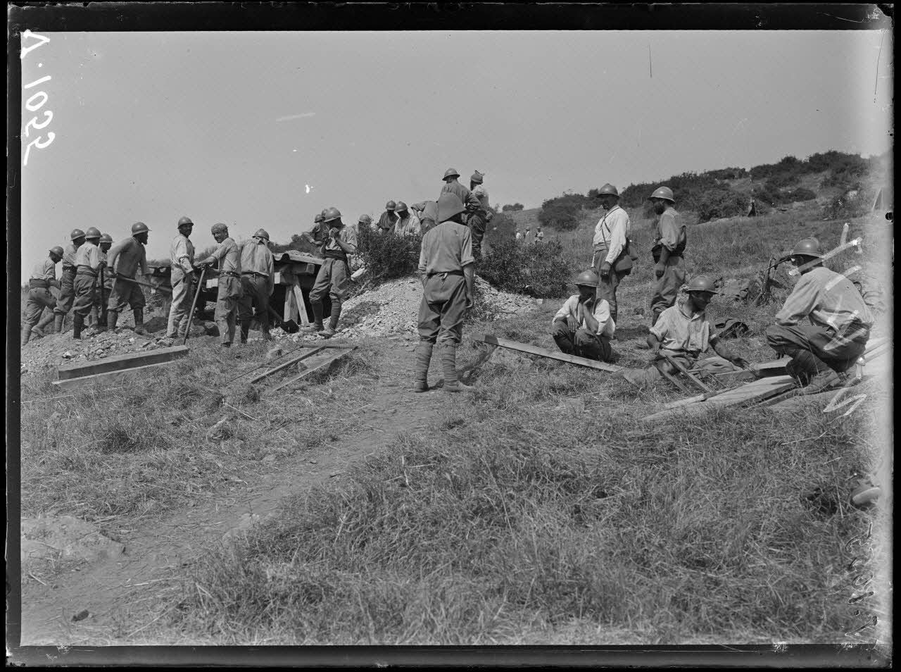 17 août 1916. Région de Vladaja. Construction d'un abri de bombardement au PC de la 34e, 3e coloniale.