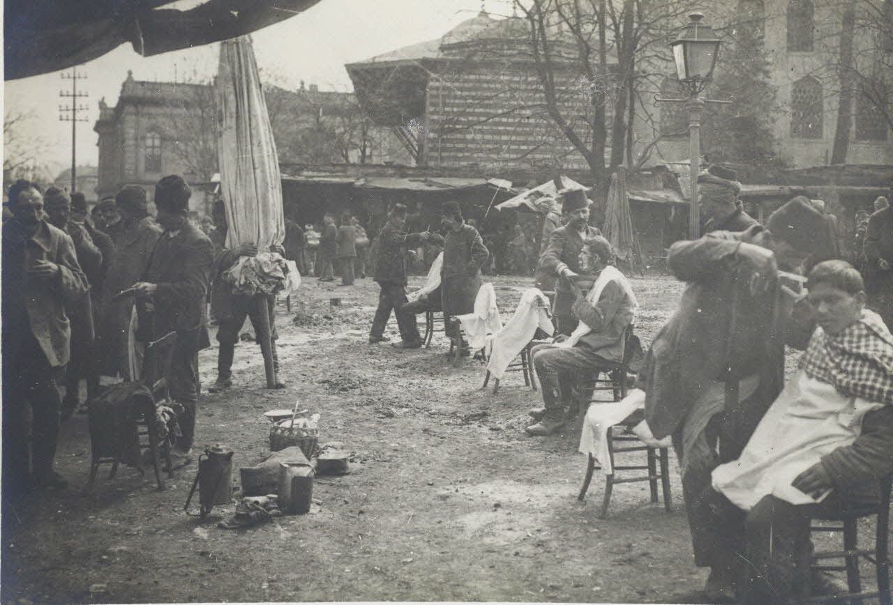 Salonique. Coiffeurs turcs en plein air. [légende d'origine]