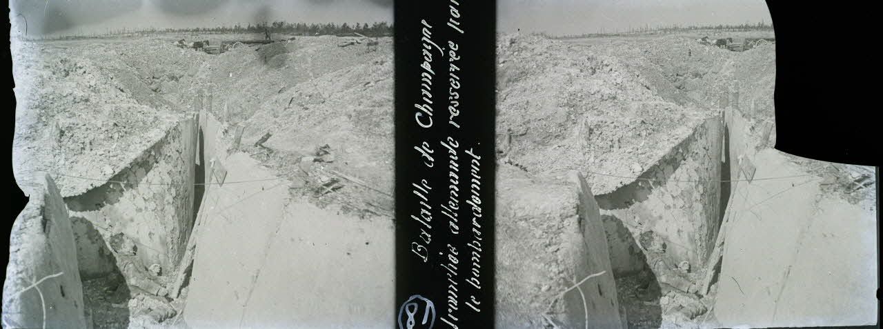18. Bataille de Champagne. Tranchée allemande resserrée par le bombardement. [légende d'origine]