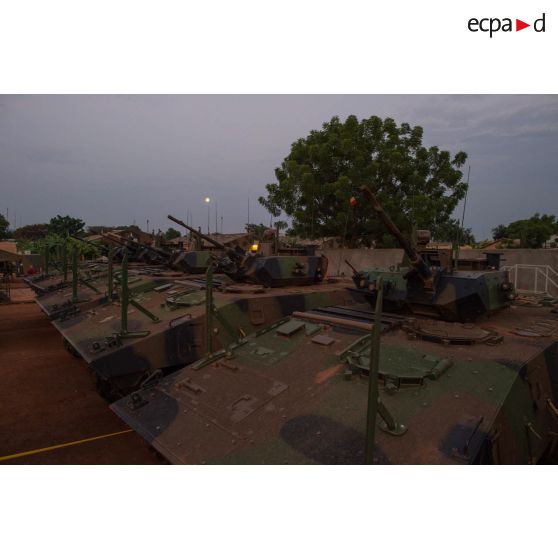 Véhicules VBCI (véhicule blindé de combat d'infanterie) intégrés au 1er RT du GTIA (groupement tactique interarmes) Turco en stationnement sur le train de combat du camp M'Poko de Bangui.