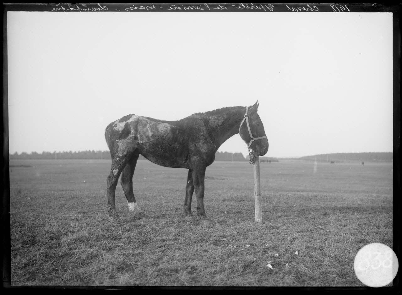 1918, cheval ypérité de l'arrière-train, Champagne. [légende d'origine]