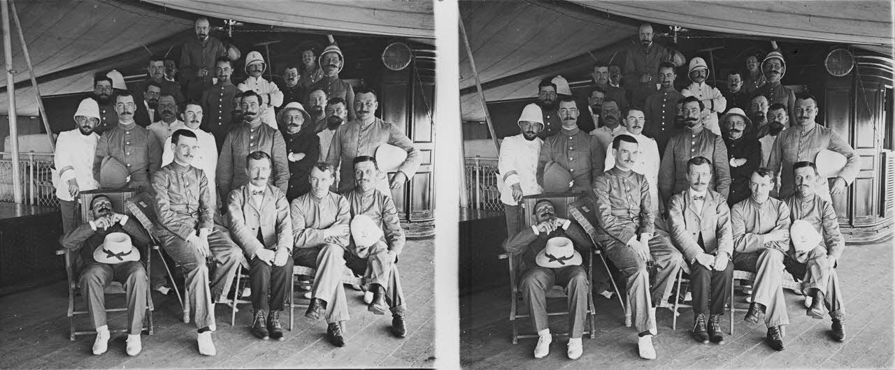 196. Groupe d'officiers sur le spardeck. [synthèse des deux légendes d'origine]