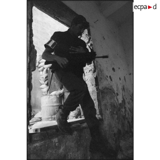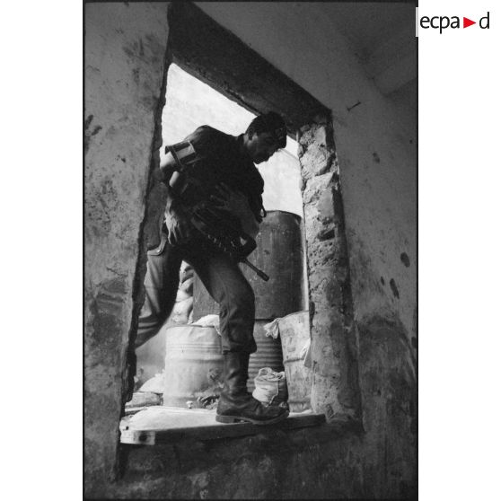 Soldat du 3e RIMa en reconnaissance dans un immeuble de Beyrouth.