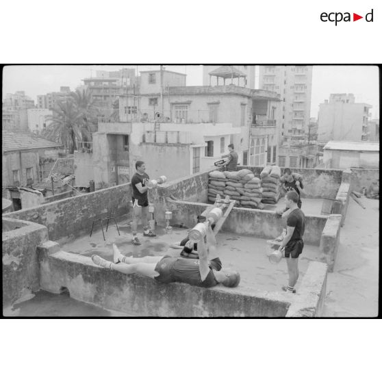 - Les entraînements des troupes : marche commando, descente en rappel, entraînement au tir et au combat dans des immeubles et la cité sportive,