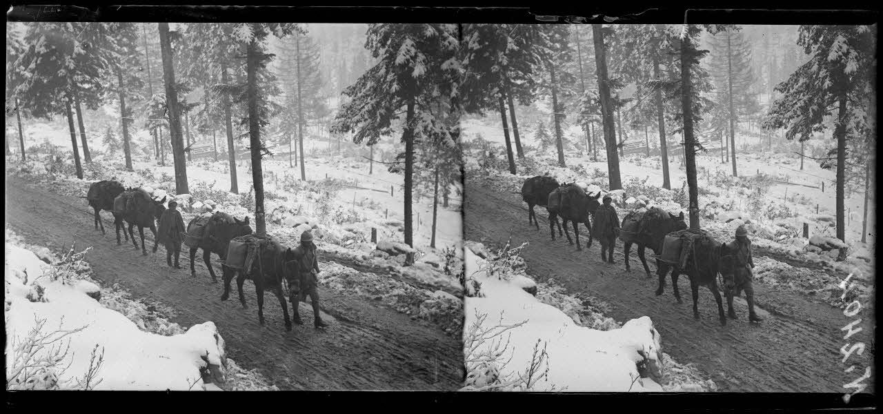 Monte Sprunck, région d'Asiago. Un convoi de ravitaillement.