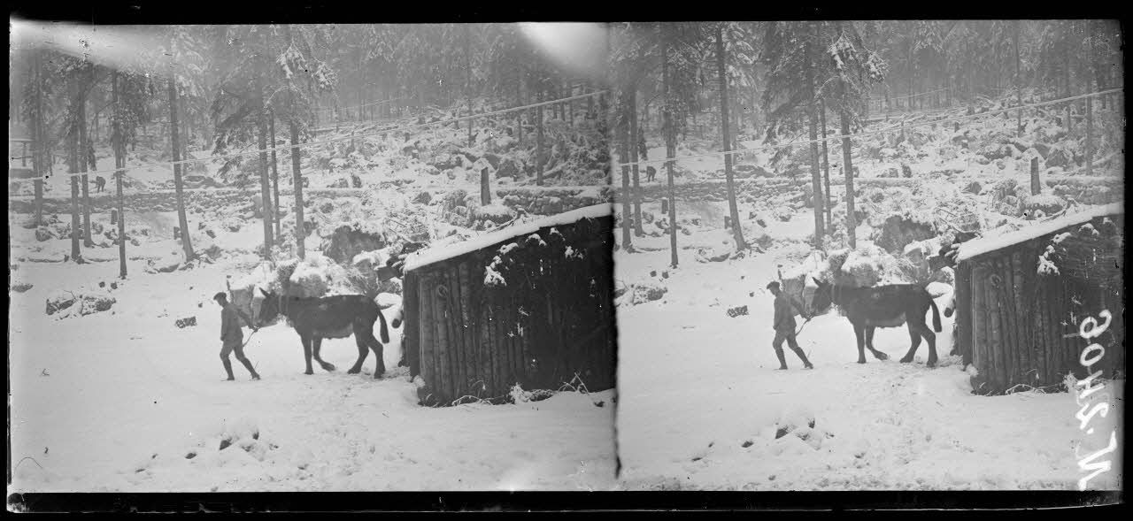 Monte Sprunck, région d'Asiago. Le ravitaillement en eau par mulets.
