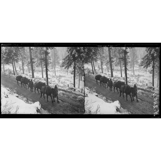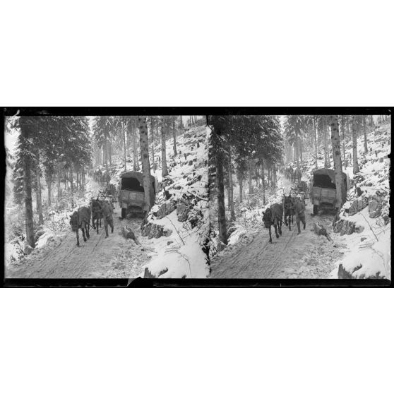 Monte Sprunck, région d'Asiago. Un convoi de ravitaillement.