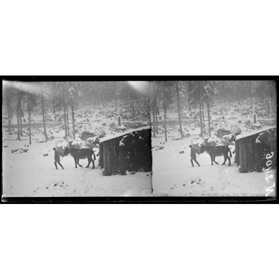Monte Sprunck, région d'Asiago. Caisson de ravitaillement dans la neige.