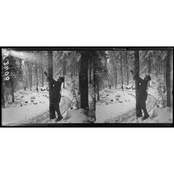 Monte Sprunck, région d'Asiago. Soldats italiens posant une ligne téléphonique.