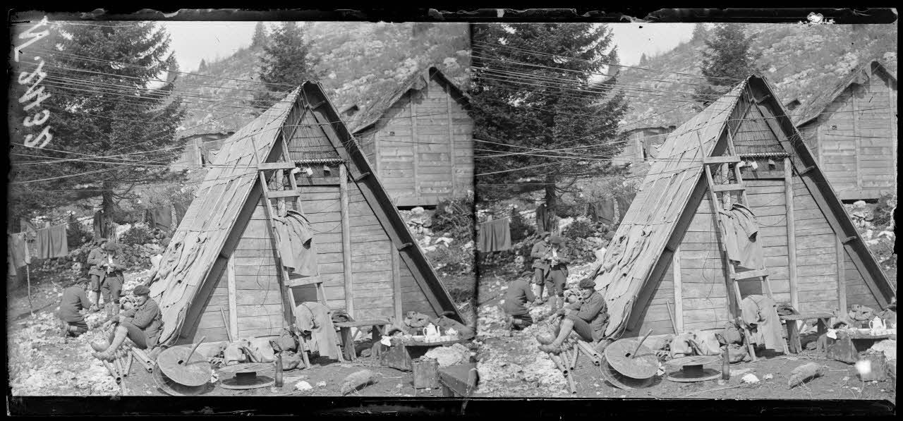 Officiers et soldats sont photographiés devant des postes de commandement, des abris, des tranchées couvertes, des postes d'observation et de guet, un poste de secours. Les troupes italiennes et françaises sont au cantonnement dans les sous-bois ; des clichés montrent une cuisine, le coiffeur, un dépôt d'eau. Le ravitaillement en vivres et en eau se fait à dos de mulet. Des pièces d'artillerie, notamment une batterie de 75 mm, montent en ligne. Les routes sont enneigées et des soldats doivent en effectuer le déblaiement.
