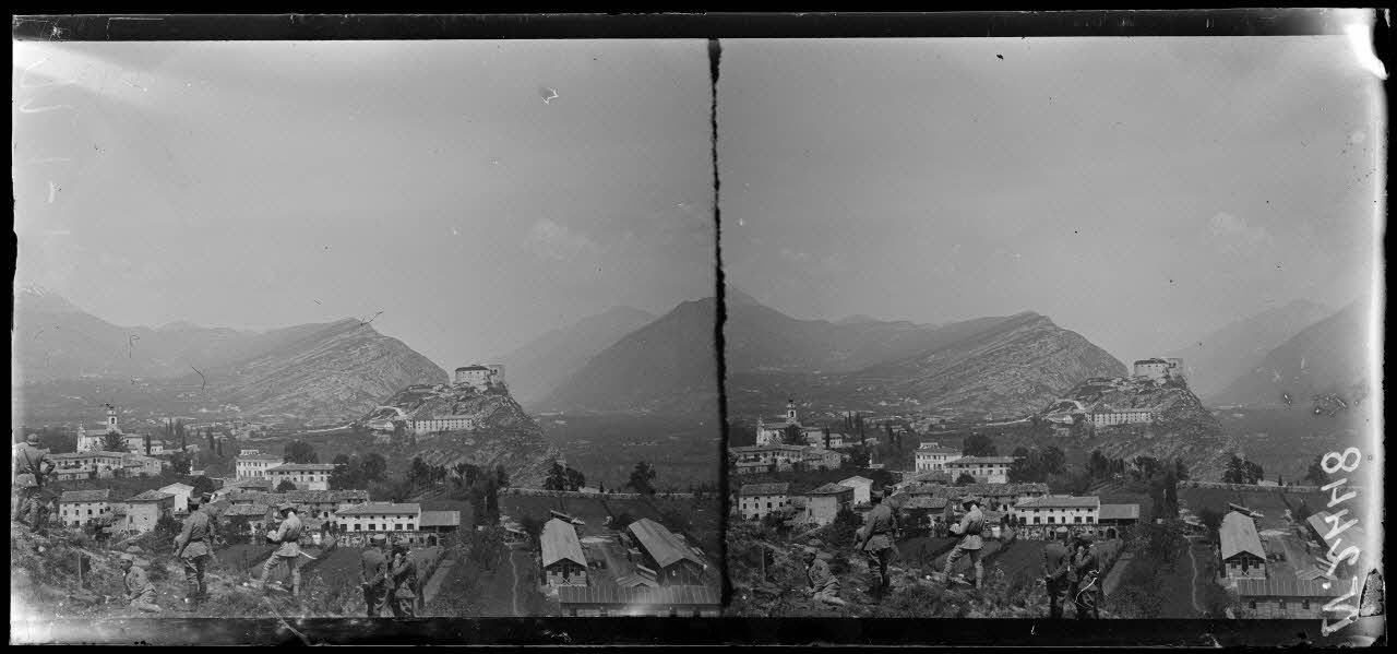 A Rivoli Veronese, le reportage montre une vue panoramique prise depuis le terrain du centre d'instruction de l'armée et une vue de l’Adige près d’une cluse située au nord-ouest de la ville. Les vues montrent ensuite la cérémonie d'exhumation des corps des grenadiers tombés en 1797, devant le monument édifié à l'époque, en présence du général Grange. Les officiers français et italiens sont photographiés devant la fosse et le monument. Ils rendent les honneurs avant une bénédiction.