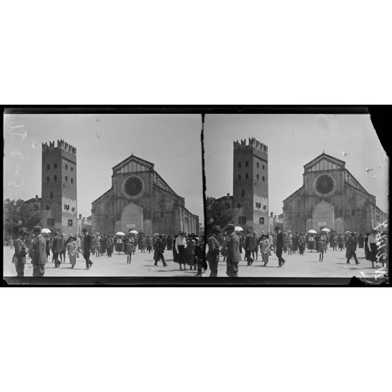 A Vérone, pendant une offensive sur l'altipiano d'Asiago, une cérémonie a lieu à l'église San Zeno en mémoire des soldats français tombés en Italie : vues de la sortie de l'église.