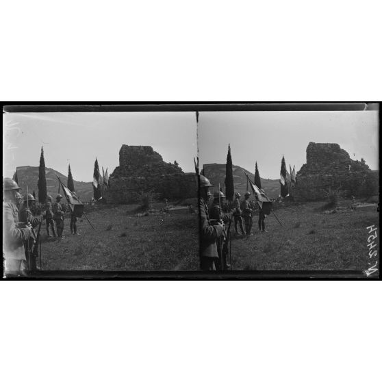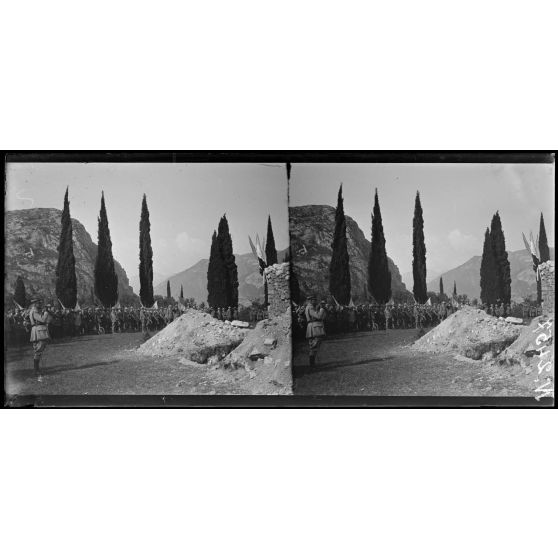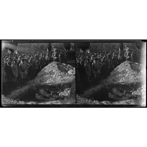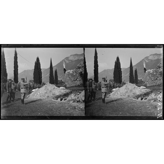 Rivoli. Au Monument. Exhumation des grenadiers de 1797. Le général Grange devant la fosse (22-5-18).
