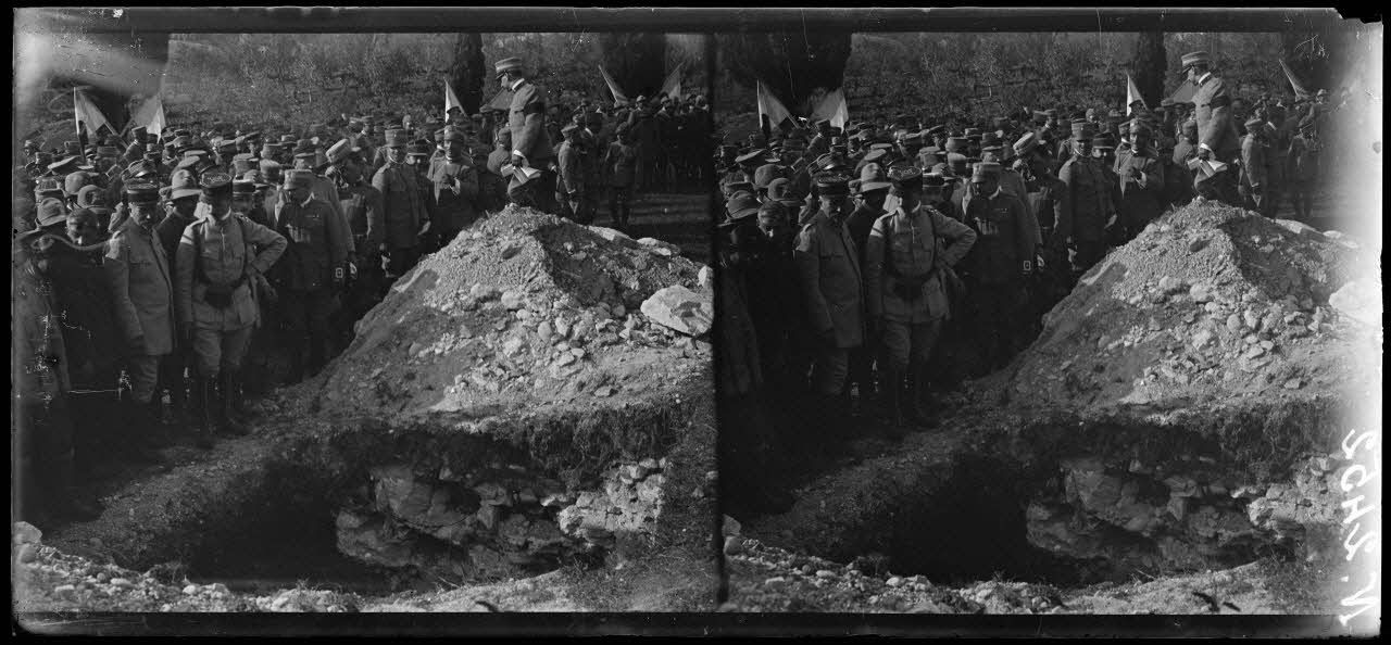 Rivoli. Au Monument. Exhumation des grenadiers de 1797. Le général Grange devant la fosse (22-5-18).