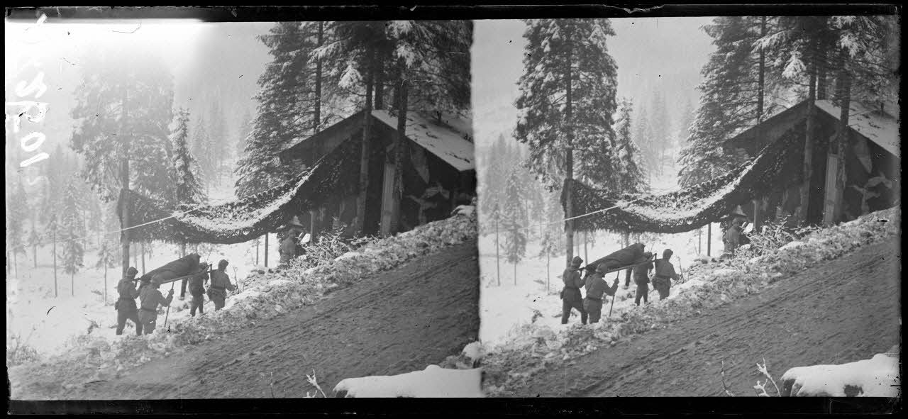 Région d'Asiago. Monte Sprunk. Poste de secours sous la neige (2-6-18).