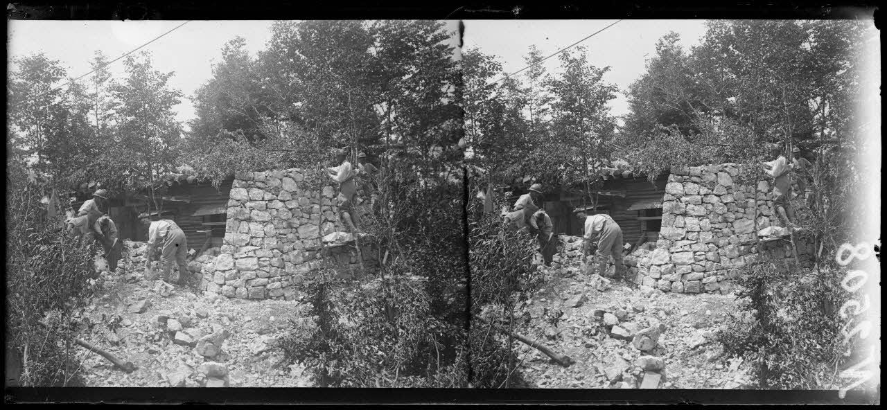 Région de Capitello. Construction d'abris. [légende d'origine]