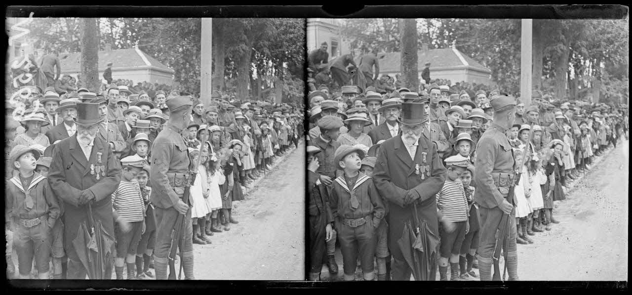 Chaumont (Haute-Marne). Le 14 juillet au Q.G.américain. La foule pendant le défilé, à gauche, un vétéran de 1870. [légende d'origine]