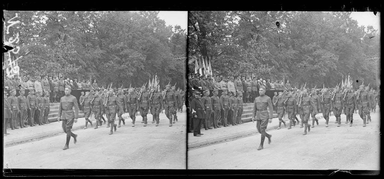 Défilé du 14 juillet 1918 à Chaumont (Haute-Marne) au grand quartier général américain.
