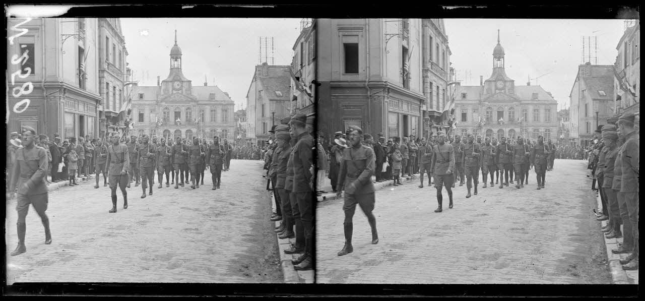 Défilé du 14 juillet 1918 à Chaumont (Haute-Marne) au grand quartier général américain.