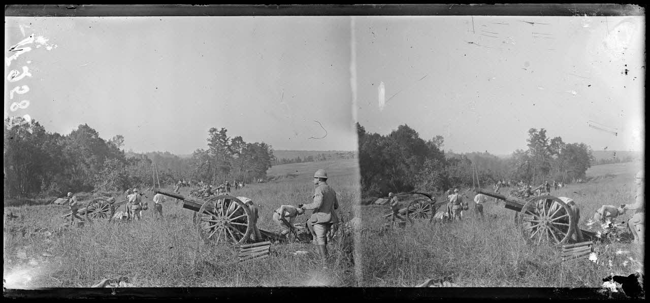 Vers Longpont (ferme de Beaurepaire). Terrain conquis par la 38e DI, régiment d'infanterie coloniale du Maroc. Echelon d'artillerie.