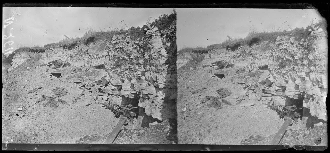 Vers Longpont (ferme de Beaurepaire). Terrain conquis par la 38e DI, régiment d'infanterie coloniale du Maroc. Cadavres allemands.