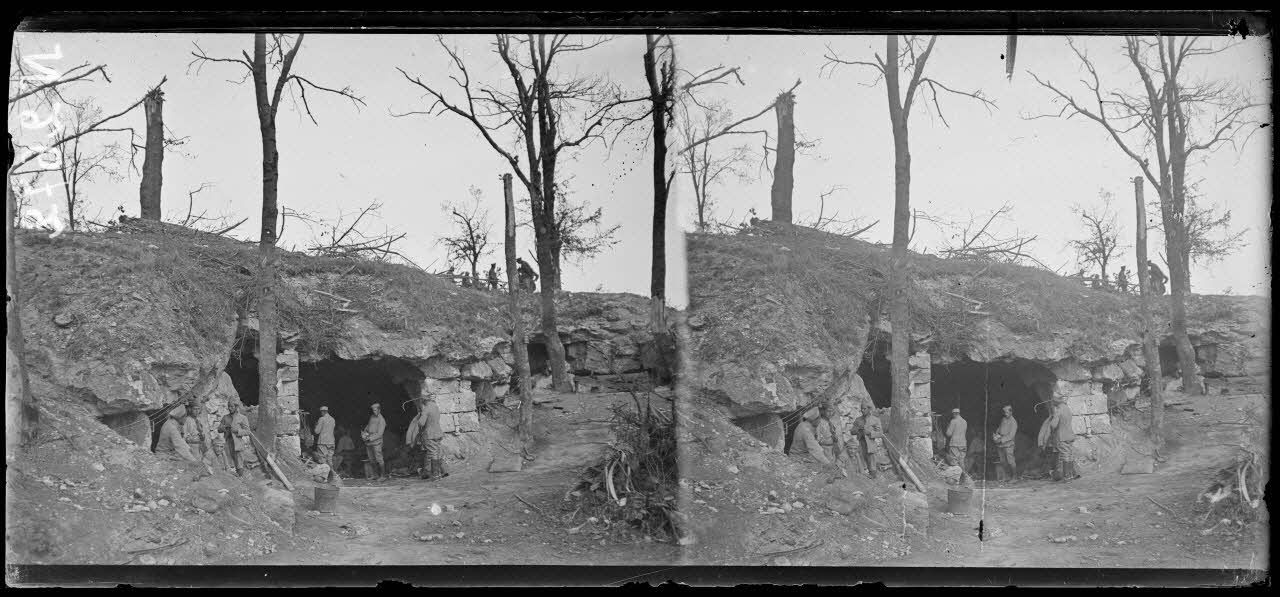 Saint-Pierre-Aigle (Aisne). Artilleurs cantonnant dans les grottes.