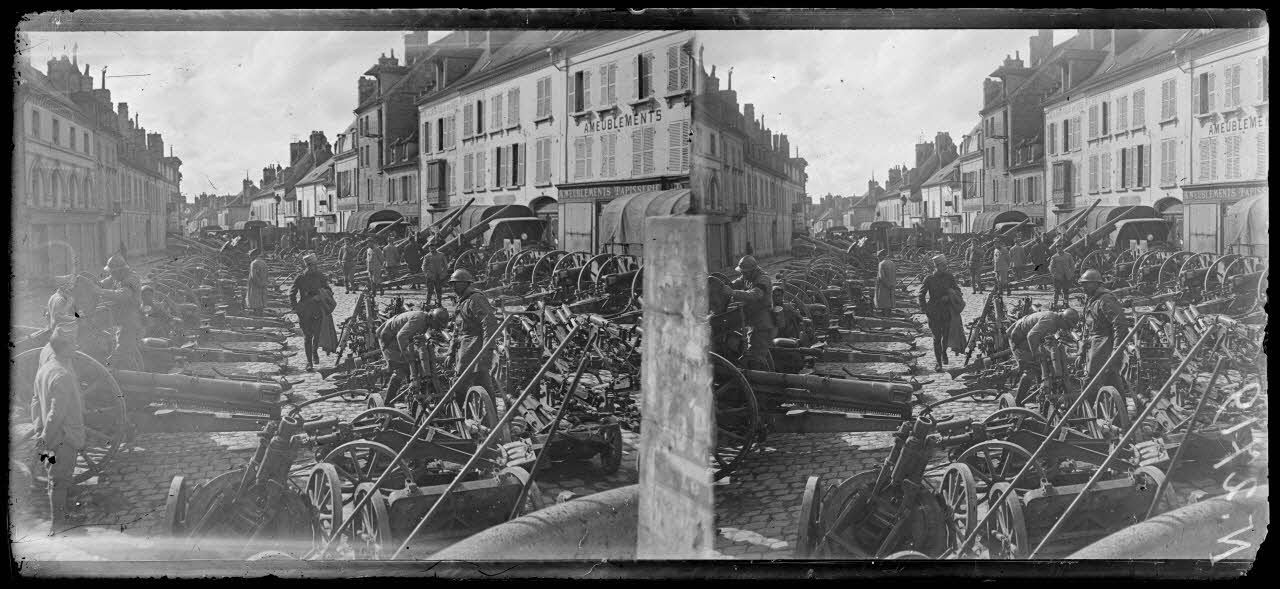 Villers-Cotterêts (Aisne). Soldats mettant en place le matériel pris aux Allemands (2-8-18). [légende d'origine]