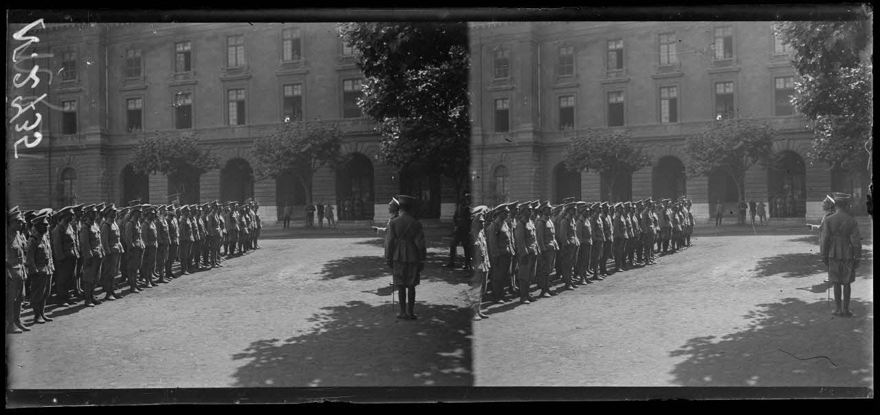 Marseille. Arrivée des troupes siamoises. A la caserne Saint-Charles. Un colonel siamois lit une proclamation aux troupes.
