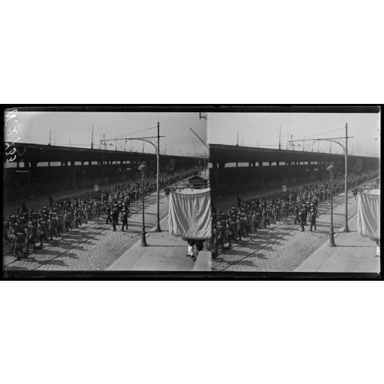 Marseille. Arrivée des troupes siamoises. Les troupes arrivent au cantonnement près de la cathédrale.